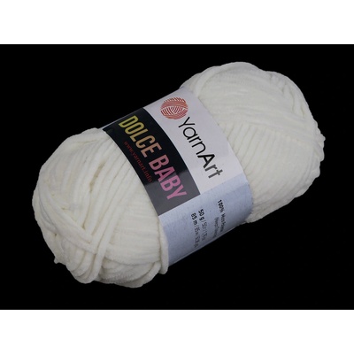 Žinylková příze Chenillove v krémové barvě (001) je vyrobena ze 100% polyesteru. Má jemnou strukturu, která je velmi příjemná na omak a elegantní matný vzhled. Je oblíbená pro výr
