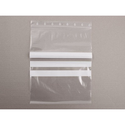 Uzaviratelné sáčky na zip 20x25 cm se třemi matnými bílými pruhy na popsání. Igelitové sáčky vhodné na potraviny. Pytlíky na zip jsou vhodné k balení drobných předmětů v...