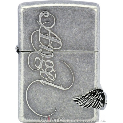 Benzínový zapalovač Love Angel se srdcem a andělskými křídly Legendární ZIPPO zapalovač vyrobený v USA v moderním Antique Silver Plate designu, který má starožitný vzhled, je...
