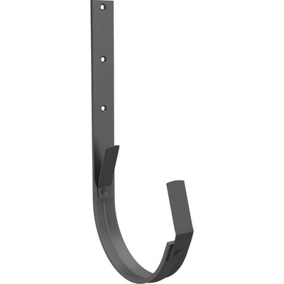 KJG žlabový hák ke žlabu (okapu) rozvinuté šíře 3300 mm, délka 550 mm. Slouží k upevnění střešních žlabů na střešní konstrukci. Materiál pozink RAL 7016 antracit
