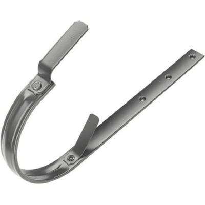 Klasický žlabový hák dlouhý s příchytným jazýčkem Lindab K 33 150 mm. Na žlab široký 150 mm, délka háku 330 mm, barva RAL 7011 tmavě šedá.