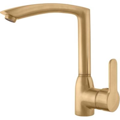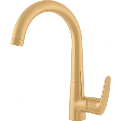 Páková kuchyňská baterie - materiál kartáčované zlato - délka výtoku 215 mm - výška 425 mm - komfortní zóna 295 mm - stojánková montáž - pákové boční ovládání - otočné...