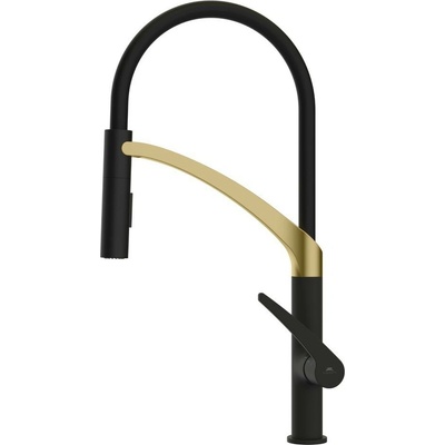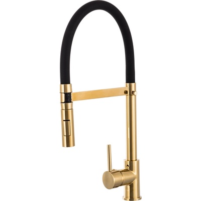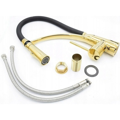 Gamma Vento, dřezová baterie s elastickým ramenem a 2-funkčním výtokem, černá-zlatá lesklá, GMA-BVOK-GD - Výrobce: Gamma - Série: Vento - Typ: dřezová baterie - Materiál:...