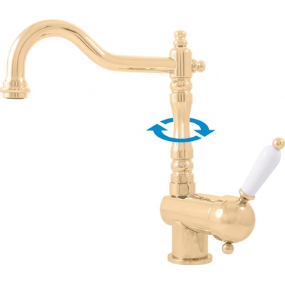 Vodovodní baterie umyvadlová/dřezová stojánková s otočným ústím. - tato baterie je vybavena keramickou kartuší o průměru 35 mm KA3502 - provedení zlato Typ připojení flexi...
