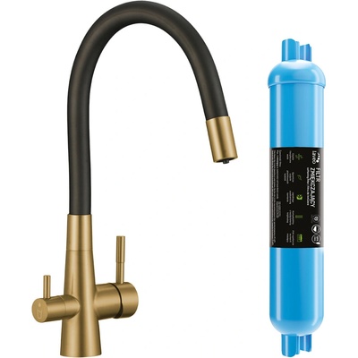 Invena Magic, stojánková dřezová baterie s flexibilním ramenem a filtrem na pitnou vodu, černá-zlatá lesklá, INV-BZ-08-F09-V Popis: Ekologie, ergonomie a plná funkčnost v...