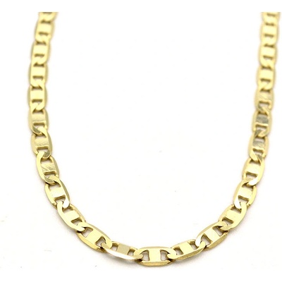 Řetízek ze žlutého zlata 585 - tři oválná očka, podlouhlé očko s rozšířenými okraji, lesklý povrch.