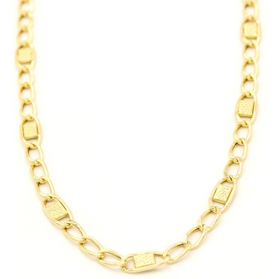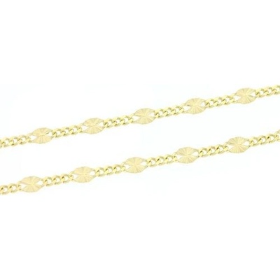 Krásný zlatý řetízek vyrobený ze žlutého zlata v ryzosti 585/1000. Zlatý řetízek s ozdobnými ploškami je vhodný pro samostatné nošení. Šířka plošky řetízku - 2,5...