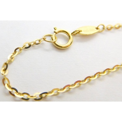 Řetízek ze žlutého zlata. Materiál je zlato 14 karátů 585/1000. Orientační váha je při 45 cm 1,97 g. Šířka řetízku je 1,2 mm.