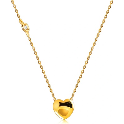 Náhrdelník ze žlutého 585 zlata, lesklá objímka s diamantem, přívěsek ve tvaru malého srdce, hladká podlouhlá očka.