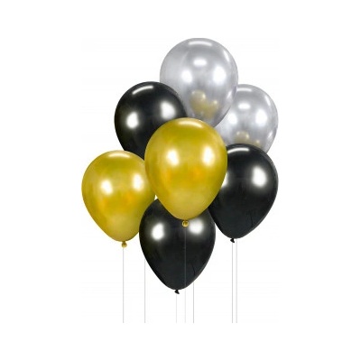 Set latexových balónků v elegantních barvách pro slavnostní výzdobu tematické párty, vánočního večírku či silvestrovské párty. Mix balónků v černé, zlaté a stříbrné barvě....