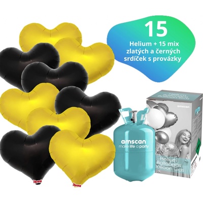 Set obsahuje helium a 15 zlatých a černých srdíček IBREX včetně provázků. Je připravený ihned k použití. Létající balónky budou jedinečnou dekorací, která vydrží 30 dní....