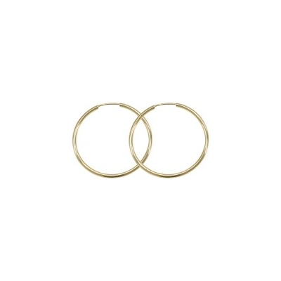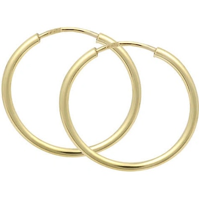 Stylové náušnice ze 14kt zlata ve tvaru kruhu o průměru 2,5 cm. Náušnice mají lesklý a hladký povrch a střední průměr. Tento osvědčený typ náušnic je velmi oblíbený a žádaný....