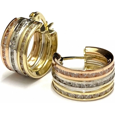 Náušnice zdobené zirkony, vyrobené v kombinaci žlutého, bílého a červeného zlata ryzosti 585/1000-14karátů. Díky jednoduchému designu jsou náušnice nadčasové. Materiál: -...