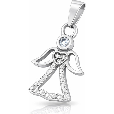 Něžný dámský přívěsek z bílého zlata (585/1000) ve tvaru anděla, který je zdobený drobnými bílými zirkony. Povrchová úprava rhodium šperku zajistí větší odolnost a lesk. Všechno...