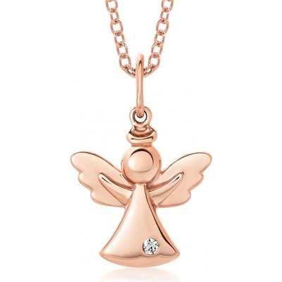 Dámský zlatý přívěsek anděl vyrobený z růžového 14 karátového zlata. Díky rozměrům je vhodný i pro menší slečny. Řetízek není součástí. Rozměr: 5,5 x 13 mm. Váha: 0,2 g.