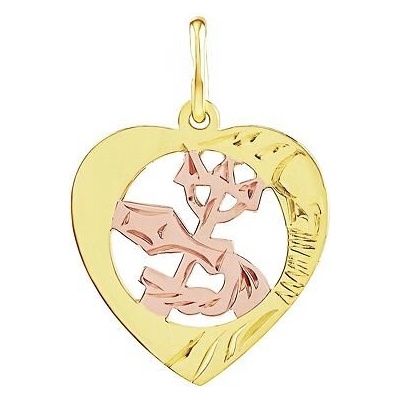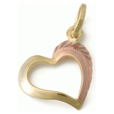 Přívěsek ve tvaru srdce je vyrobený z kombinace žlutého a červeného zlata ryzosti 585/1000-14karátů. Obrys srdíčka je z jedné strany ozdobně rytý, z druhé strany je hladký a...