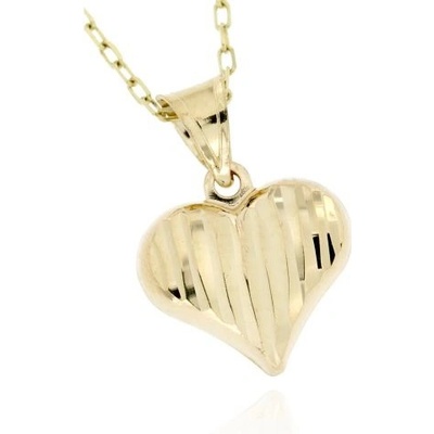 Zlatý přívěsek srdce - Dámský přívěsek ve tvaru srdce je vyroben ze žlutého zlata v ryzosti 585/1000. Celozlaté srdce je na povrchu ozdoben jednoduchou rytinou. Velikost...