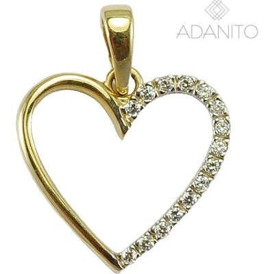 Zlatý přívěsek srdíčko je vyrobený ze žlutého zlata a je zdobený čirými zirkony. Rozměr přívěsku je 12x13 mm. Celková výška přívěsku s ouškem je 18 mm.