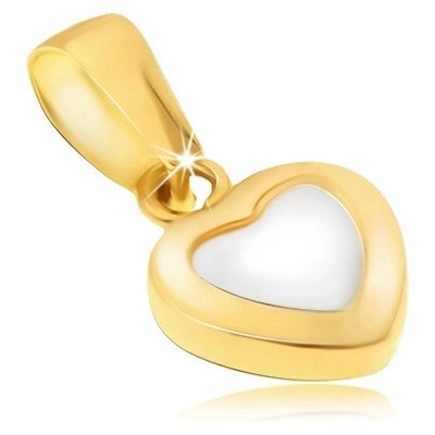 Přívěsek ze zlata 14K, symetrické dvoubarevné srdíčko, blyštivé a hladké.