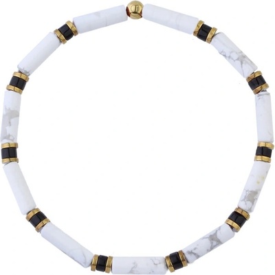 Tento pánský náramek spojuje tři výrazné minerály – bílý howlit, černý onyx a zlatý hematit – do harmonického celku, který vyzařuje klid, sílu a noblesu. Barevná kombinace bílé,...