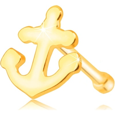 Rovný piercing ze 14K žlutého zlata, rovná tyčinka ukončená plochou kotvou.