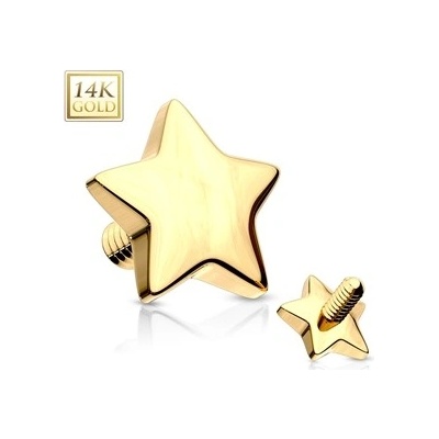 Zlatý piercing mikrodermál - 14ti karátové zlato Zlatý piercing z 14ti karátového zlata ve tvaru hvězdičky UPOZORNĚNÍ: U tohoto zboží je požadována úhrada zálohy ve výši 30% z...
