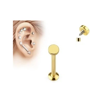 Rovný piercing ze 14K žlutého zlata, rovná tyčinka ukončená plochou kotvou.