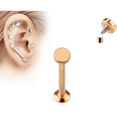 Labreta s ozdobnou částí ve tvaru kolečka Piercing do brady se vnitřním závitem Labreta je vyrobena z kvalitní chirurgické oceli 316L a má povrchovou úpravu v barvě růžového...
