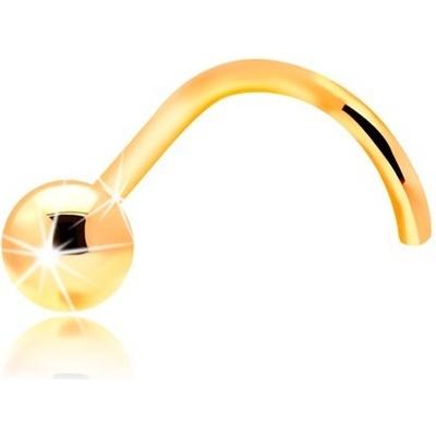 Piercing do nosu ve žlutém zlatě 585, kulička se zrcadlově lesklým a hladkým povrchem, zahnutý tvar.