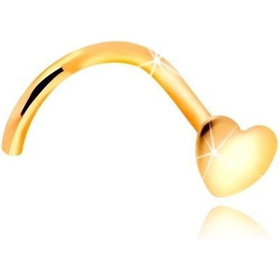Piercing do nosu ve žlutém 14K zlatě, souměrné srdíčko se zrcadlově lesklým a hladkým povrchem, zahnutý tvar.