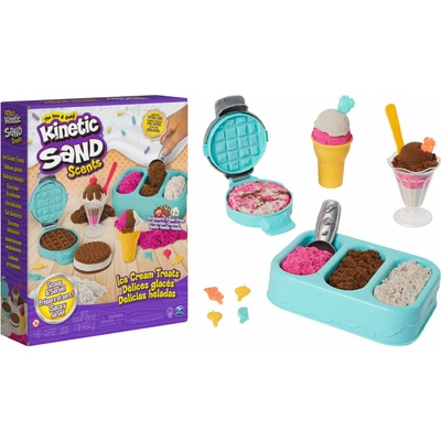 Vany na zmrzlinu Kinetic Sand s bílým, červeným nebo hnědým pískem a dvojitým nástrojem, který funguje jako lžička a naběračka, a také s formičkou ve dně vaničky nabízejí...