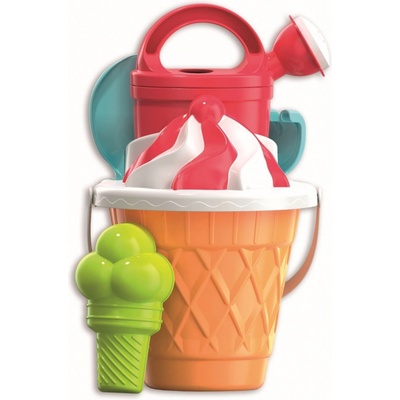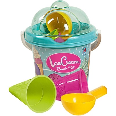 *5dílná sada na písek*vyrobená z kvalitních plastů v Itálii*obsahuje*kyblík s víkem ve tvaru zmrzlinového poháru*kopečkovač na zmrzlinu*2 zmrzlinové kornoutky*průměr 13...