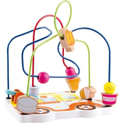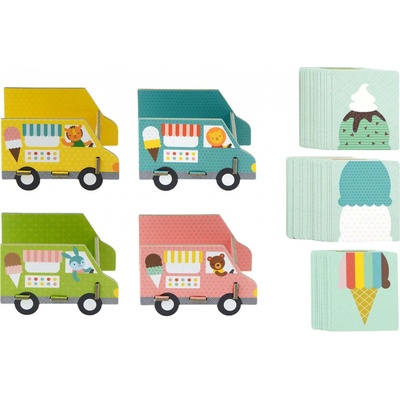 Pestrobarevná motorická hra ze dřeva garantuje hodně zábavy a podnětů: Na zrmzlinářském voze se posouvají různé kopečky zmrzliny, vafle a nádoby se zmrzlinou po třech...