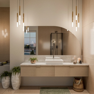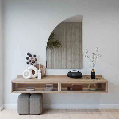 Moderní zrcadlo Base je ideální do koupelny, ložnice i předsíně. Jeho čistý design spojuje precizní geometrické linie s organickou elegancí a ladí s každým interiérem.