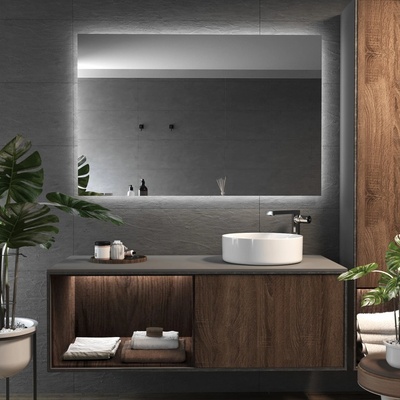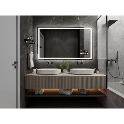 Moderní hranaté zrcadlo F5 s LED osvětlením a praktickými funkcemi. Doprava zdarma.