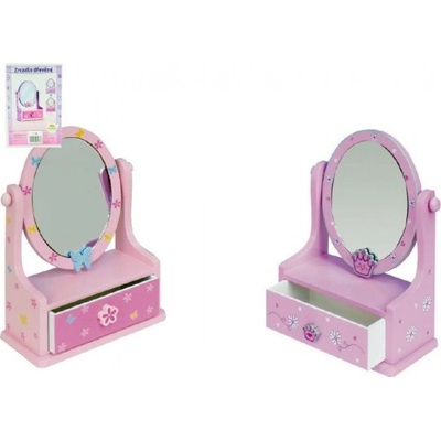 Oválné zrcátko v dřevěném rámu se zásuvkou je určeno pro holčičky od 3 let. V šuplíčku mohou mít uloženy holčičky malý hřebínek, sponky a gumičky. Při pohledu do zrcáka se u něho mohou pak pěkně upravit. Upozornění: jedná se o dekorační předmět, nejedná se o...