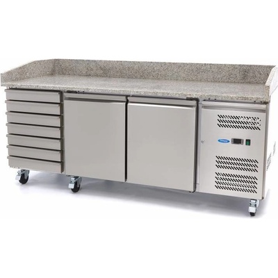 Chladící pizza stůl 8x1/6 GN - žulová deska | Maxima 09400208 Jen ty nejchutnější pizzy se připravují na profesionálním chladícím stole pro přípravu pizzy. Žulový vrch...