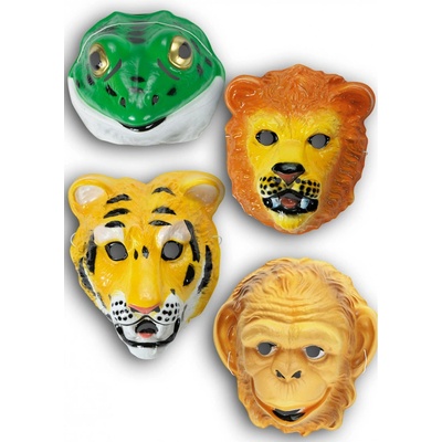 Plastové masky zvířat z džungle v různých motivech: lev, tygr, opice, žába Užitečné pro převleky v zoo.