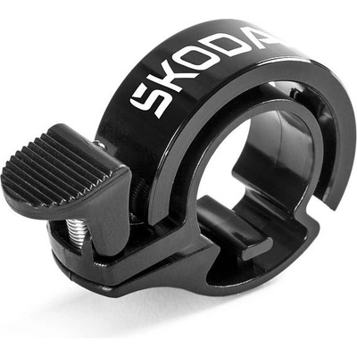 Zvonek ŠKODA na kolo v moderním minimalistickém designu s tištěným logem ŠKODA vhodný pro montáž na řidítka o průměru 22,2 – 25,4 mm.