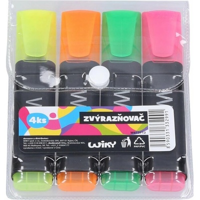 Zvýrazňovače 4 ks • Klínový hrot • 4 základní barvy (růžová, zelená, žlutá, oranžová)