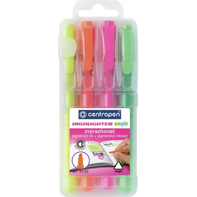 Zvýrazňovače se seříznutým hrotem. tělo v barvě inkoustu víčko s klipem inkoust na vodní bázi vysoce odolný proti vysychání i proti vyblednutí vhodný do penálu na...