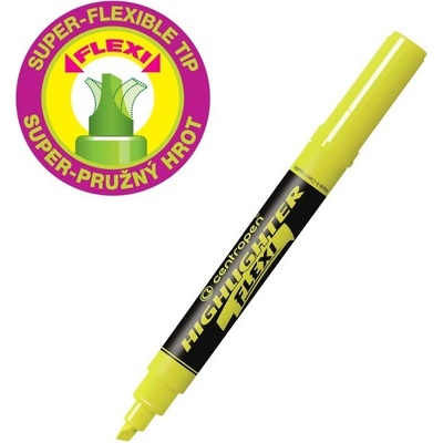 ART. Zvýrazňovač CENTROPEN 8542 FLEXI, žlutý - velkokapacitní zvýrazňovač se super pružným hrotem a fluorescenčním pigmentovým inkoustem - určený pro rychlé, hladké a pohodlné...