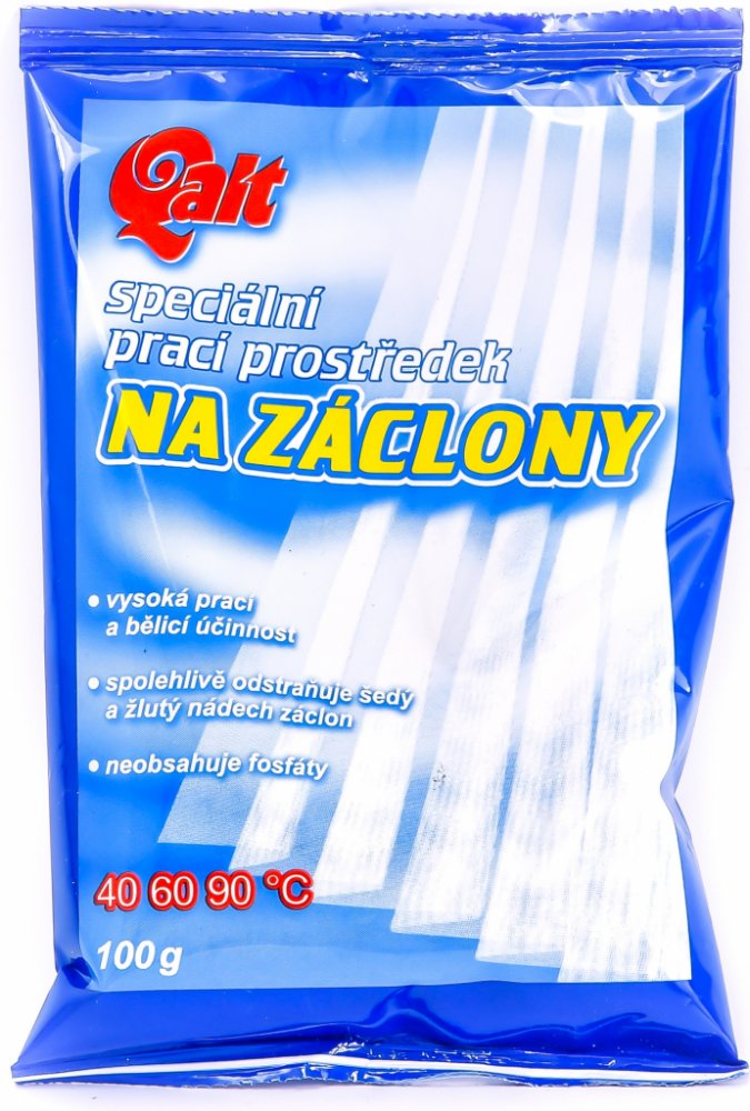 POUŽITÍ:Nasypte prášek do dávkovače na prací prostředek nebo přímo do bubnu pračky. Obsah sáčku použijte na jeden prací cyklus a dodržujte pokyny výrobce záclon týkající se teploty praní.SLOŽENÍ:viz Ingredients zadní strana. Méně než 5%: anionické a neionické tenzidy, mýdlo, enzymy, polykarboxyláty, fosfonáty, optický zjasňovač, parfém, 5% nebo více, avšak méně než 15%: bělicí složka na bázi aktivního kyslíkuUPOZORNĚNÍ:VAROVÁNÍ! Způsobuje vážné podráždění očí. Uchovávejte mimo dosah dětí. Po manipulaci důkladně omyjte ruce. Používejte ochranné rukavice. PŘI ZASAŽENÍ OČÍ: Několik minut opatrně vyplachujte vodou. Vyjměte kontaktní čočky, jsou-li nasazeny a pokud je lze vyjmout snadno. Pokračujte ve vyplachování. Přetrvává-li podráždění očí: Vyhledejte lékařskou pomoc/ošetření. Může vyvolat alergickou reakci.ŽIVOTNÍ PROSTŘEDÍ:Neodhazujte výrobek ani prázdný obal do volné přírody. Chraňte životní prostředí tříděním odpadu. Má to smysl.VÝROBCE:Qalt Rakovník spol. s r.o.Zavidov 72Petrovice 27035Tel: +420 313 250 372Email: eshop@qalt.cz