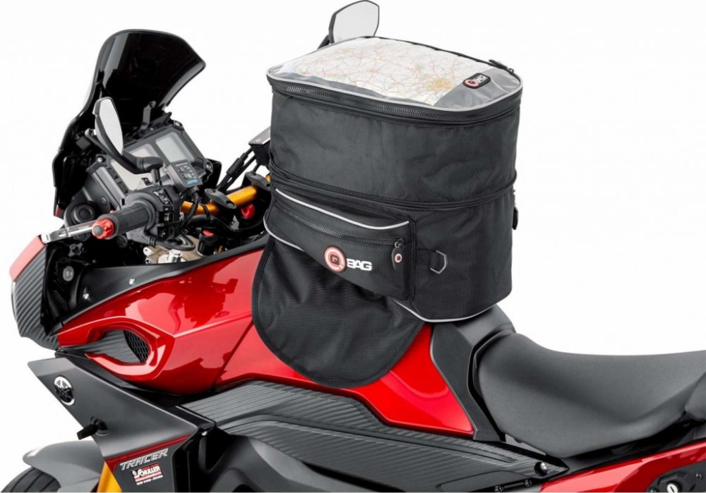 Tankvak QBag magnetický je nezbytným doplňkem pro přepravu zavazadel na motocyklu. - upevnění pomocí 8 dvojitých magnetů a popruhu na krk řízení - podložka odolná proti skluzu, jemná a chránící lak před poškrbáním- slída na mapu, uvnitř 2 síťové přihrádky, 2 vnější kapsy- reflexní prvky pro vyšší bezpečnost- pláštěnka do deště- objem plynule nastavitelný na 15 - 27 litrů- rozměry (23l) : D-39,6cm ...
