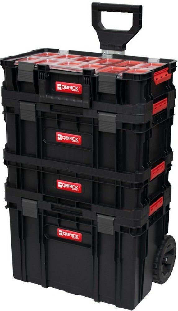 Profesionální pojízdný kufr na nářadí tvoří sestava pojízdného kufru, kufru a organizéru modulového systému QBRICK SYSTEM TWO z odolného plastu pro náročné nasazení (Heavy Duty).