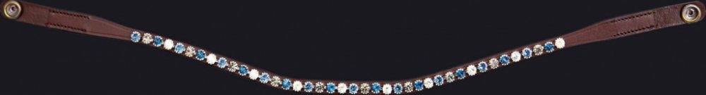 Kvalitní kožená čelenka k uzdečce FaySport PresTeq v hnědém provedení s modrými kamínky. Čelenka se vyrábí ve více barevných variantách. PresTeq používá originální krystaly Swarovski, které optimálně odráží světlo a navíc krásně září. Díky připínacímu systému PressTEQ je výměna čelenky velmi snadná. Už nemusíte rozebírat celou uzdečku, ale můžete jednoduše odepnout druky (cvočky) a čelenku vyměnit...