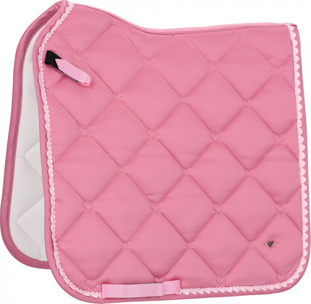 Stylová podsedlová dečka Lyvia s motivem srdíček zaujme svým designem i funkčností. Je anatomicky tvarovaná a podšitá prodyšnou síťovinou, která efektivně odvádí pot a zajišťuje výbornou ventilaci. Krátká poutka na sedlo a podbřišník se suchým zipem zajišťují pevné a bezpečné usazení. Elegantní vzhled doplňuje jemné lemování srdíčky a logo výrobce ve tvaru srdíčka.