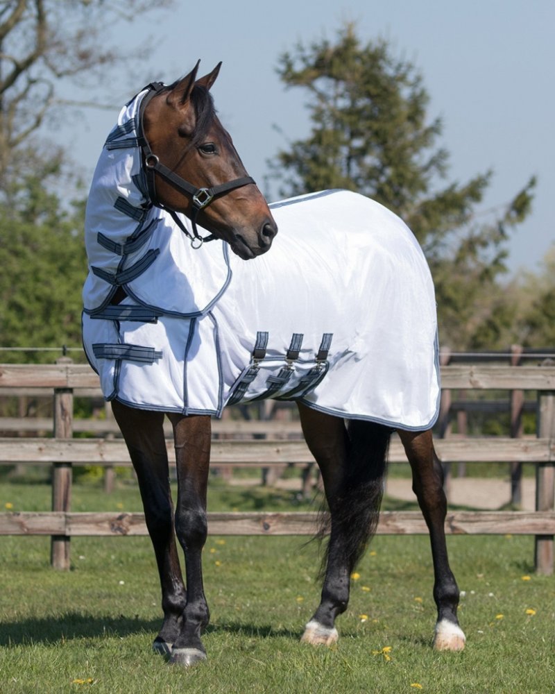 Kvalitní prodyšná síťová deka, která zamezuje přístupu hmyzu a omezuje možnost vzniku ekzému. Včetně krčního a břišního dílu. Elastické části zajišťují komfort a pohyb bez omezení.