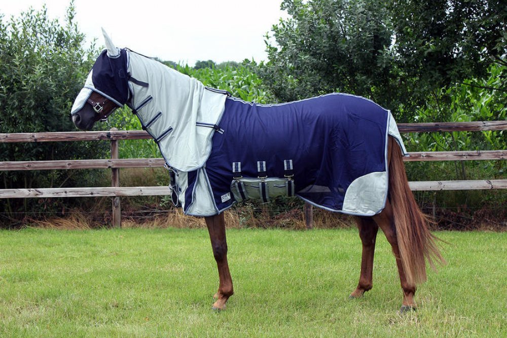 Prodyšná síťová deka, zamezuje přístupu hmyzu. Včetně masky, krčního a břišního dílu. Deka proti mouchám z jemné síťoviny. Odepínací maska, krční a břišní část, na suchý zip. Perfektně sedí. Břišní část se třemi popruhy. Dvojité přední zapínání na přesku. S ramenními klíny a ocasní klapkou. Elastické popruhy mezi nohy a pod ocas. Dostupná v těchto velikostech: pro délky zad od 90cm do 175cm, měř...