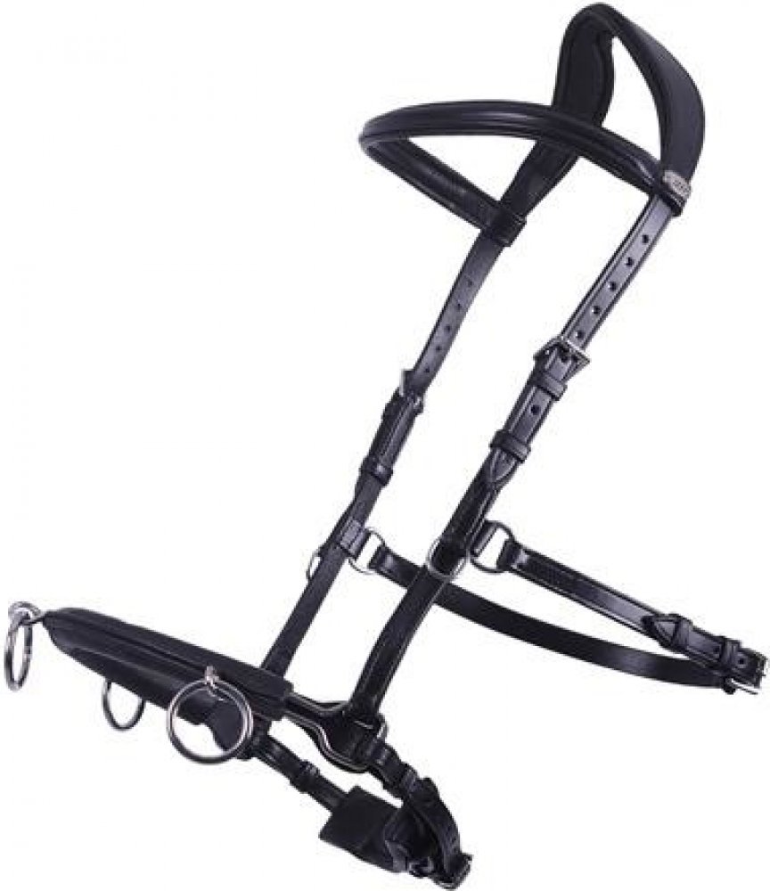 Pevný lonžovací kožený obnosek značky QHP, který může být využit i jako uzdečka.